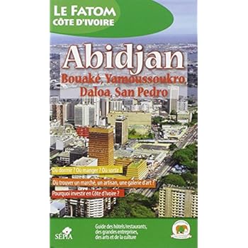 Découvrir Abidjan, Yamoussoukro, Bouaké, Daola et San Pedro. Leur histoire, les sites touristiques, leur culture, leur patrimoine traditionnel et contemporain, leurs entreprises... Ce guide propose une multitude d'informations pour faciliter votre séjour. Tous les guides de la Fondation Atef Omaïs ont une vocation humaine et sociale. Les bénéfices des ventes sont investis dans les services sociaux de base en faveur des populations vulnérables en Côte d'Ivoire.
