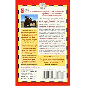 Every red-blooded motorcyclist dreams of making the Big Trip ; Chris Scott’s Adventure Motorcycling Handbook, now updated and in its 7th edition, is the comprehensive manual to make that dream a reality. Practical information Documentation, sponsorship, ten popular overland machines rated, preparation and gear (what you actually need, not what you can buy) as well as dealing with culture shock, borders, robbery, medical emergencies, shipping, navigation, wild camping, highway and off-road riding, fault diagnosis plus Austin Vince’s filming tips. Overland route outlines across Asia, Africa and Latin America - the countries of the developing world : aka the AM Zone. Tales from the Saddle Spoke-bending moto adventures from the earliest two- wheel pioneers to recent first-hand accounts. Trip reports from contemporary travellers including Jamie Duncan, Steph Jeavons, Lois Pryce, Ted Simon and Lisa & Simon Thomas.
